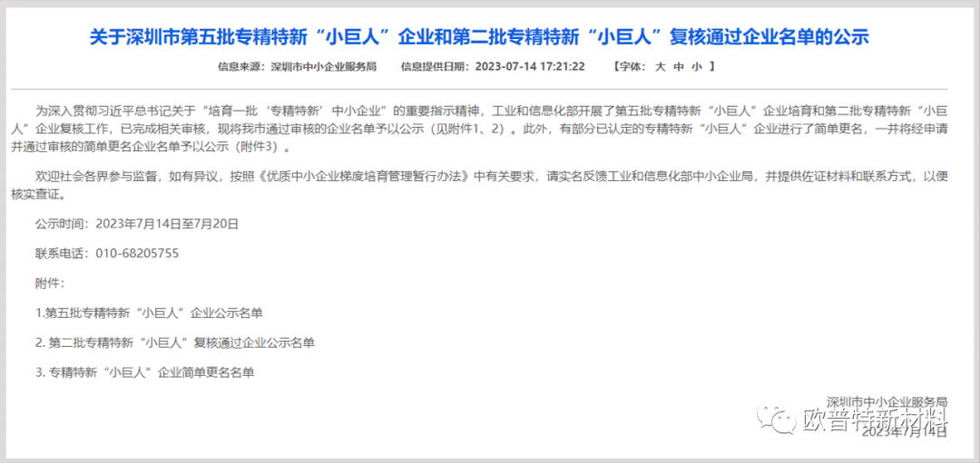 深圳歐普特通過審核并公示,獲工業(yè)和信息化部專精特新“小巨人”企業(yè)。