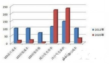 計劃還指出,至2020年LED芯片及封裝成本較2012年減少約8成、發(fā)光效率增60-100%、60W等級LED燈泡零售價將較2013年減66%。