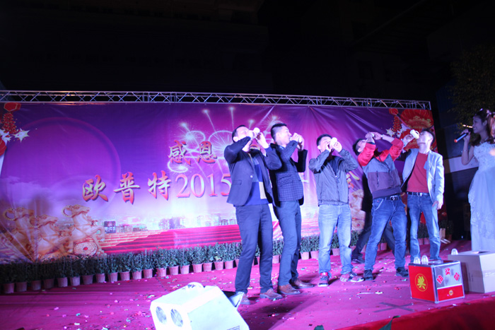 三“羊”開泰迎新春,幸福歡樂一家人。2014年12月31日下午17:00,萬眾期待的“感恩、回饋2015年歐普特新年晚會(huì)”在深圳市歐普特工業(yè)園隆重舉行,公司全體員工及員工家屬出席了此次盛會(huì)自12月征集節(jié)目開始,各部門都踴躍報(bào)名,編排了許多風(fēng)格各異、形式不一的節(jié)目,經(jīng)過節(jié)目初審和再審,最終有10個(gè)節(jié)目入選,在2015年新年晚會(huì)為大家呈現(xiàn),包括有舞蹈、歌曲、小品、等多種形式。為了能夠給家人們帶來一臺(tái)精彩絕倫的晚會(huì),入選的節(jié)目都加緊步伐進(jìn)行排練,在晚會(huì)前進(jìn)行認(rèn)真的彩排及細(xì)致的服裝挑選,以求達(dá)到最好的演出效果。晚會(huì)前,所有的演員、禮儀、主持人及工作人員都早早到達(dá)晚會(huì)現(xiàn)場(chǎng)進(jìn)行準(zhǔn)備工作!主持人宣布晚會(huì)正式開始,并介紹了到場(chǎng)的各位員工家屬??偨?jīng)理劉誠(chéng)先生上臺(tái)發(fā)表了新年賀辭,肯定了歐普特在過去一年取得的成就,指出了未來一年公司的奮斗目標(biāo)和前進(jìn)方向。這一天,我們相約在這里,共同分享我們的快樂!